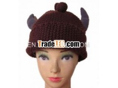 100% acrylic knit animal beanie with fleece lining